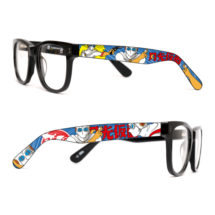 El Capitán Centella con gabardina blanca, gafas y scarf al viento viaja contigo en estas gafas de rojo azul y onomatopeyas japonesas. Vibra retro de serie clásica que funciona en oficina, calle o maratón de nostalgia. Ritmo ágil, pose heroica y enfoque firme para tu día a día.