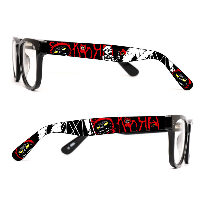 Para quienes crecieron al ritmo de los riffs pesados, estas monturas de acetato premium llevan arte en rojo y negro con guiños a la R invertida, mirada siniestra y energía de mosh. Estilo crudo, actitud noventera y presencia brutal para tu outfit diario.