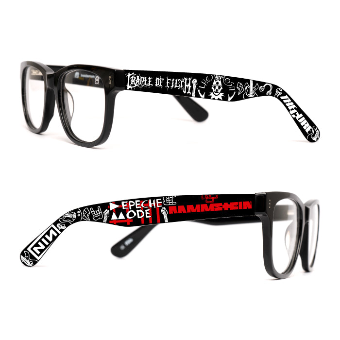 Cradle of Filth y Lacrimosa gótico con NIN Depeche Mode y Rammstein industrial. Monturas de acetato italiano premium, hechas para tu fórmula en óptica o para cuidado de pantallas y sol con filtro blue, blue fotosensible o sol negro UV400.