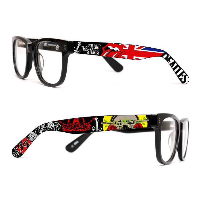 Para quien guarda su historia en playlists, estas monturas de acetato premium mezclan negro profundo con laterales icónicos: lengua de los Rolling con Union Jack, tipografía Beatles, alas de Aerosmith y sello Linkin Park. Nostalgia, actitud de estadio y comodidad diaria para que tu mirada hable por ti.