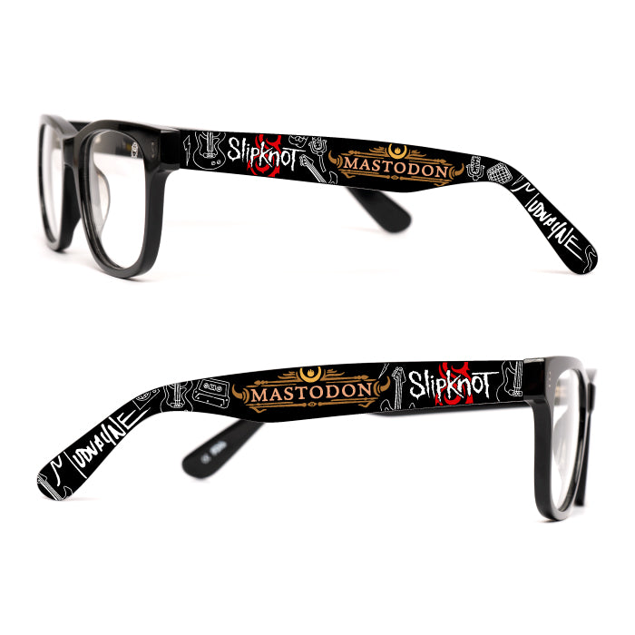 Para quienes transforman ruido en catarsis, estas monturas de acetato premium combinan negro profundo con laterales de máscaras Slipknot, filigrana Mastodon y guiños Mudvayne. Presencia brutal, detalle elegante y comodidad para llevar el mosh a diario.