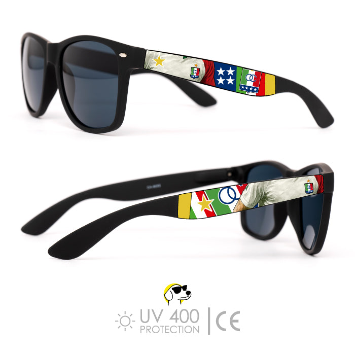 Estas gafas de sol UV400 llevan en cada trazo el sentimiento de Manizales. Inspiradas en el escudo, los colores tricolores y los símbolos que representan la historia del Once Caldas, este diseño rinde homenaje al hincha fiel, al que canta en Palogrande y siente cada partido en el alma. Para los que no solo ven el fútbol... lo viven con el sol en la cara y el corazón en la tribuna.